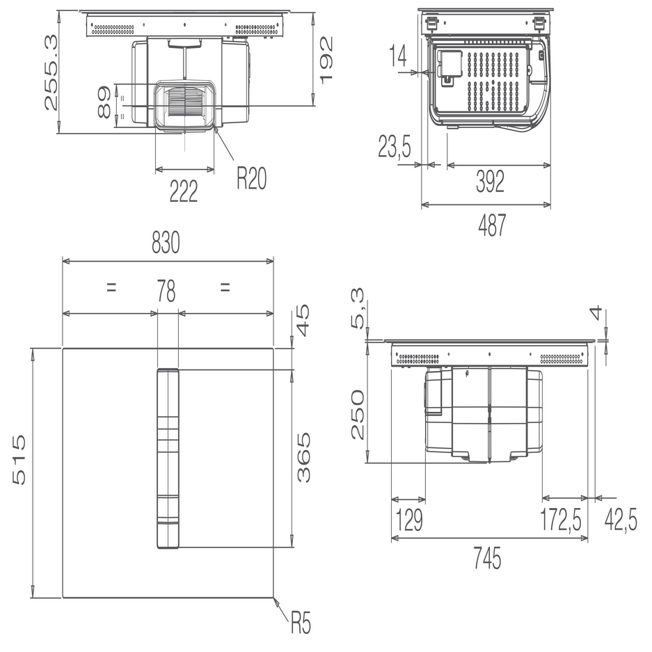 - FIT XL dizainas: Platus, optimizuotas virimo paviršius ir kompaktiškas gartraukio modulis, kuris taupo vietą po stalviršiu.
