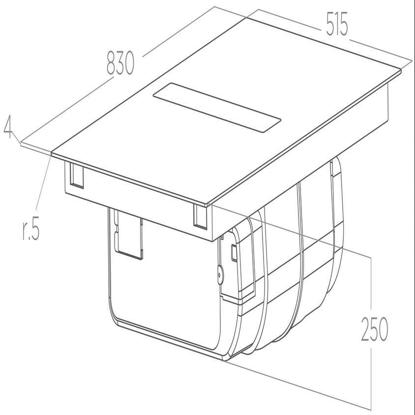 - Galinė oro išleidimo anga (Back Exit): Patogus oro išleidimo sprendimas, leidžiantis efektyviai nukreipti išvalytą orą per virtuvės baldų plintusą ar kitą specialią angą.