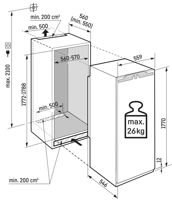 Nišos matmenys (A×P×G): 177,2-178,8 / 56-57 / 55,0 cm