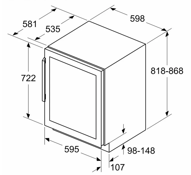 Vyno šaldytuvas-rūsys įmontuojamas po stalviršiu 81.8 x 59.8 cm