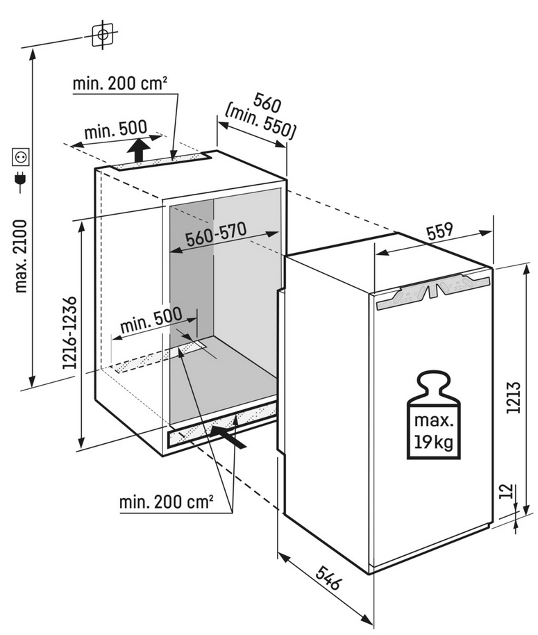 Šaldytuvas skirtas integruoti į virtuvės baldus su „door-on-door“ tvirtinimu. Jis turi reguliuojamas kojas, leidžiančias pritaikyti aukštį pagal nišos dydį. Jutiklinis ekranas užtikrina lengvą ir intuityvų valdymą.