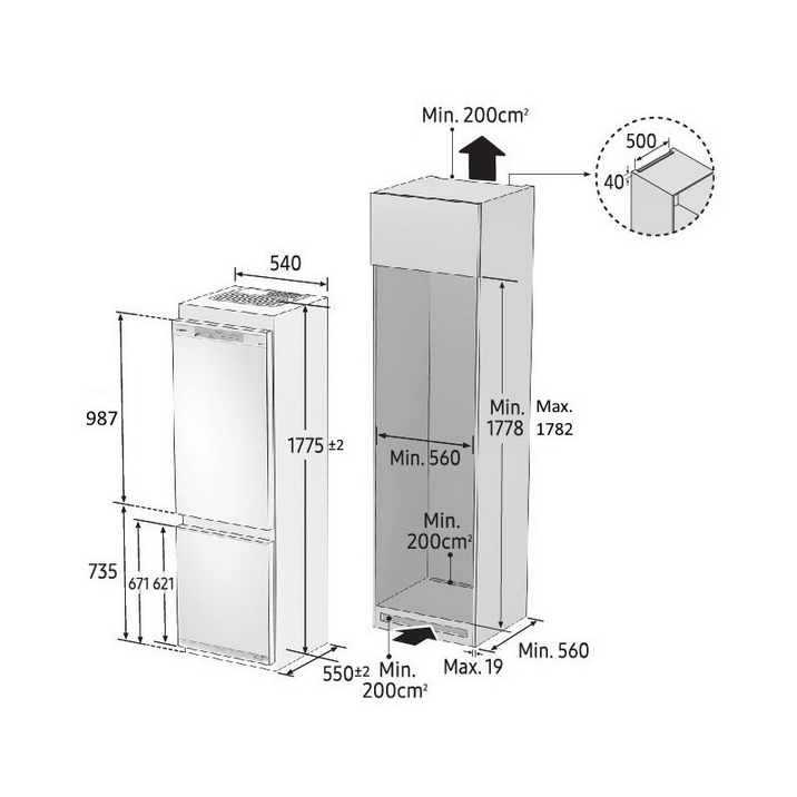 Grynieji matmenys (P x A x G) 540 x 1775 x 550 mm