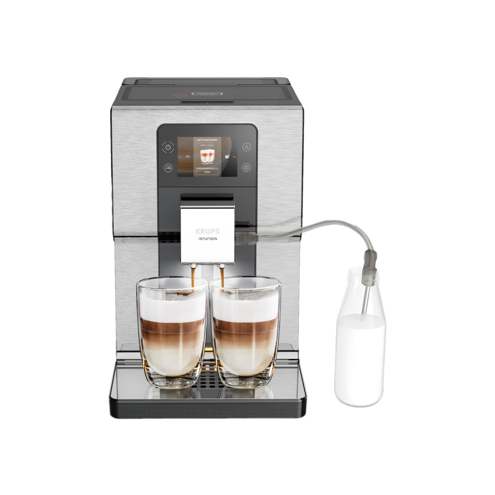 Baristos kokybės gėrimai vienu mygtuko paspaudimu su „Intuition Experience +“ automatiniu kavos aparatu. Spalvotas jutiklinis ekranas ir intuityvios indikatoriaus lemputės sklandžiai padės jums mėgautis įspūdinga kava. Šis elegantiškas, visiškai automatinis kavos aparatas su nerūdijančio plieno apdaila, pasižymintis sumažintu triukšmo lygiu, siūlo 21 karšto ir šalto gėrimo režimą vienu mygtuko paspaudimu, naują 4-ąjį kavos aromato intensyvumo lygį ir iki 8 profilių optimizuotam suasmeninimui.