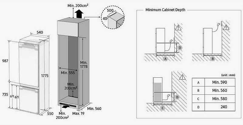 Jos sujungiamos specialiais bėgeliais (slankikliais).Atidarant baldų dureles, jos šiek tiek pasislenka šaldytuvo durelių atžvilgiu ir „tempia“ jas kartu.