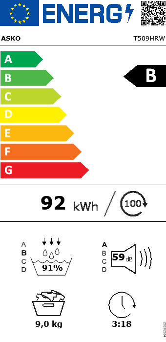• Energijos sąnaudos per 100 ciklų: 92 kWh