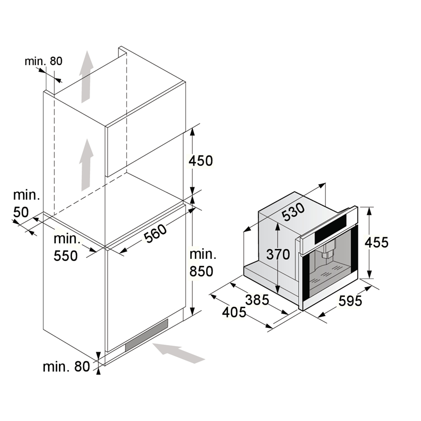 • Mažiausias nišos aukštis: 450 mm