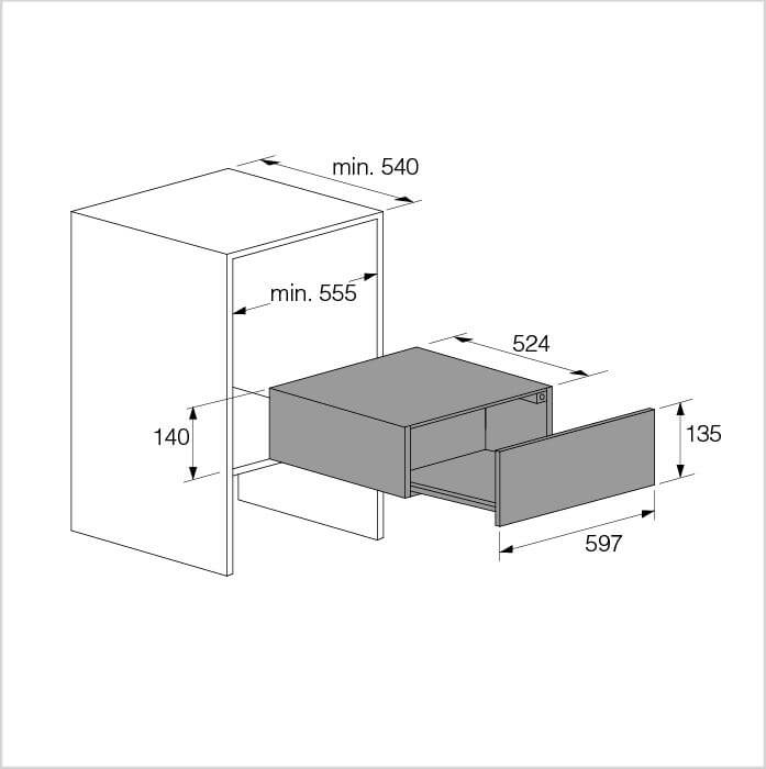 Min. nišos plotis 555 mm