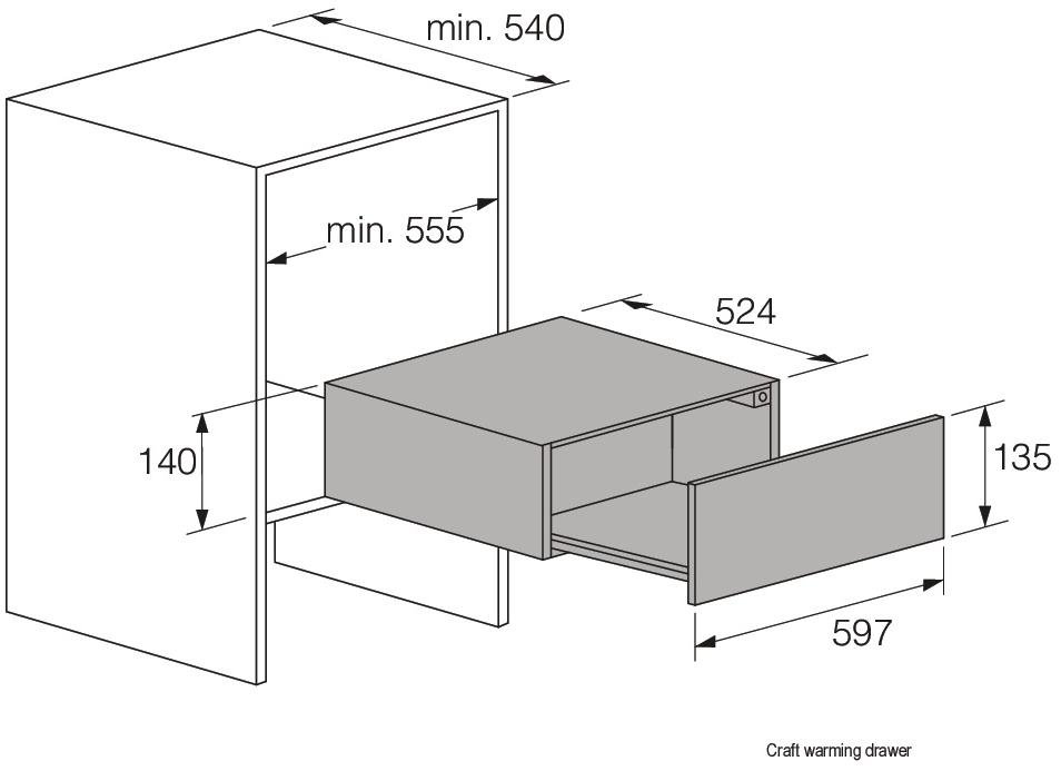 • Min. nišos plotis: 555 mm